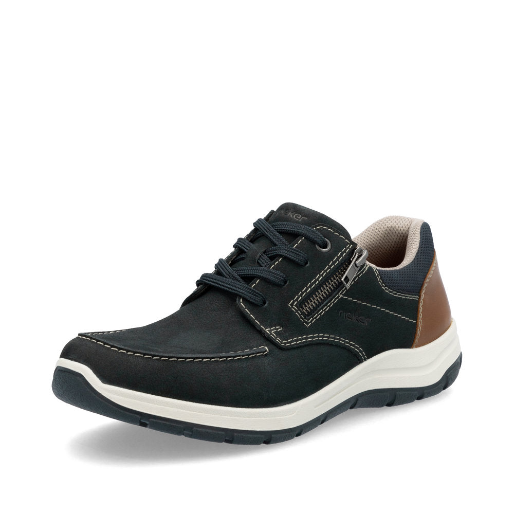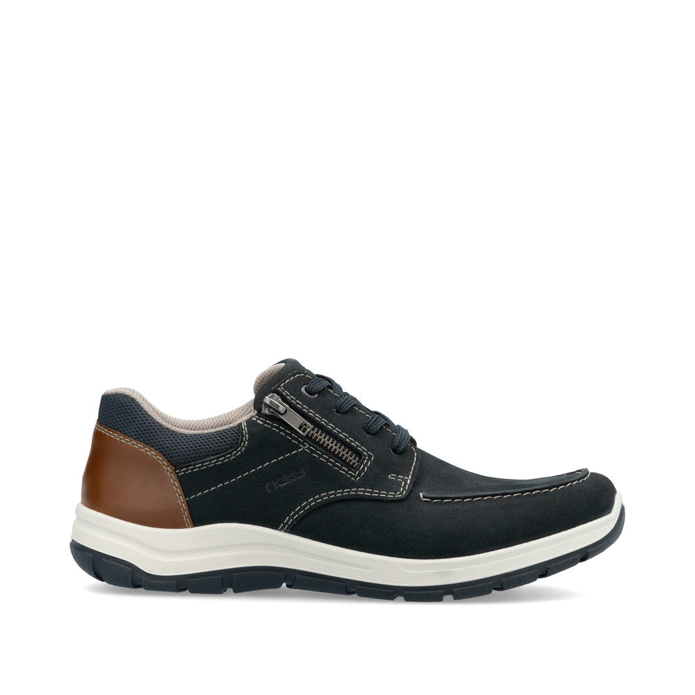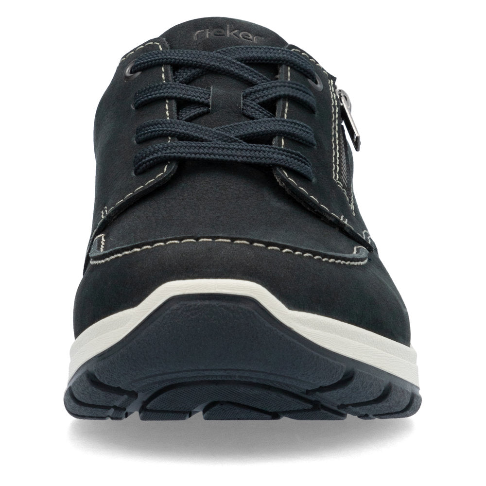 These blue Rieker lace-up shoes are made of suede leather and offer real comfort for the feet. The clever combination of lacing and zipper gives optimal support and makes it easy to put on and take off the shoe. The modern stay seam is a nice detail. The sole is both shock-absorbing and light, offering a double sense of well-being at every step. With the padded and removable insole, the shoes have another practical comfort feature. The extra width H gives the toes more freedom of movement.