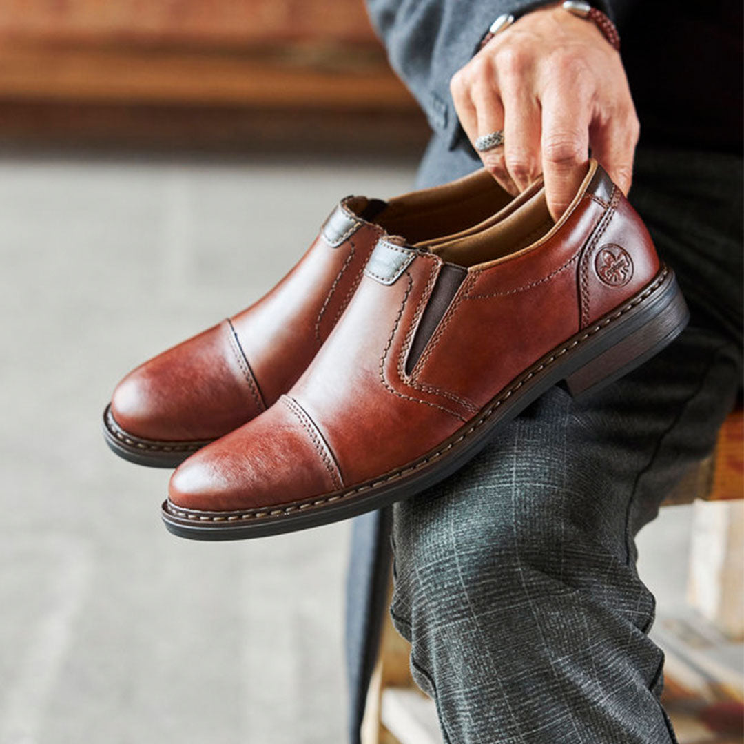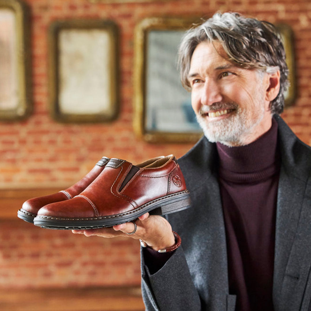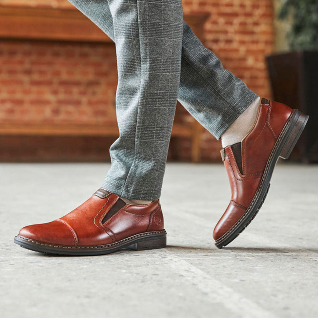 • These hazel Rieker slippers made of smooth leather guarantee a heavenly feeling. The shoe is constructed in the stitchdown style, which makes it particularly robust and flexible. The elastic insert enables quick, uncomplicated entry and exit. The shock-absorbing and light sole ensures a pleasant wearing sensation. The cover sole is also extra soft. The extra width H gives you more space in the shoe