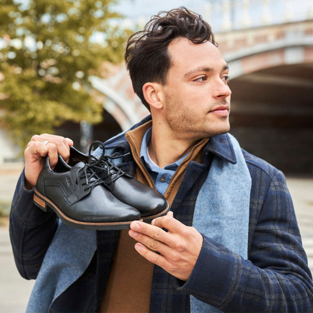 The Nashville black leather formal shoes by Rieker combine classic style with exceptional comfort. Crafted from premium black leather, these shoes feature a sleek, sophisticated design that’s perfect for any formal occasion. The lace-up closure ensures a secure fit, while the cushioned insole and flexible sole provide all-day comfort. With their versatile look and durable construction, these shoes offer the perfect blend of style and practicality for the modern man.