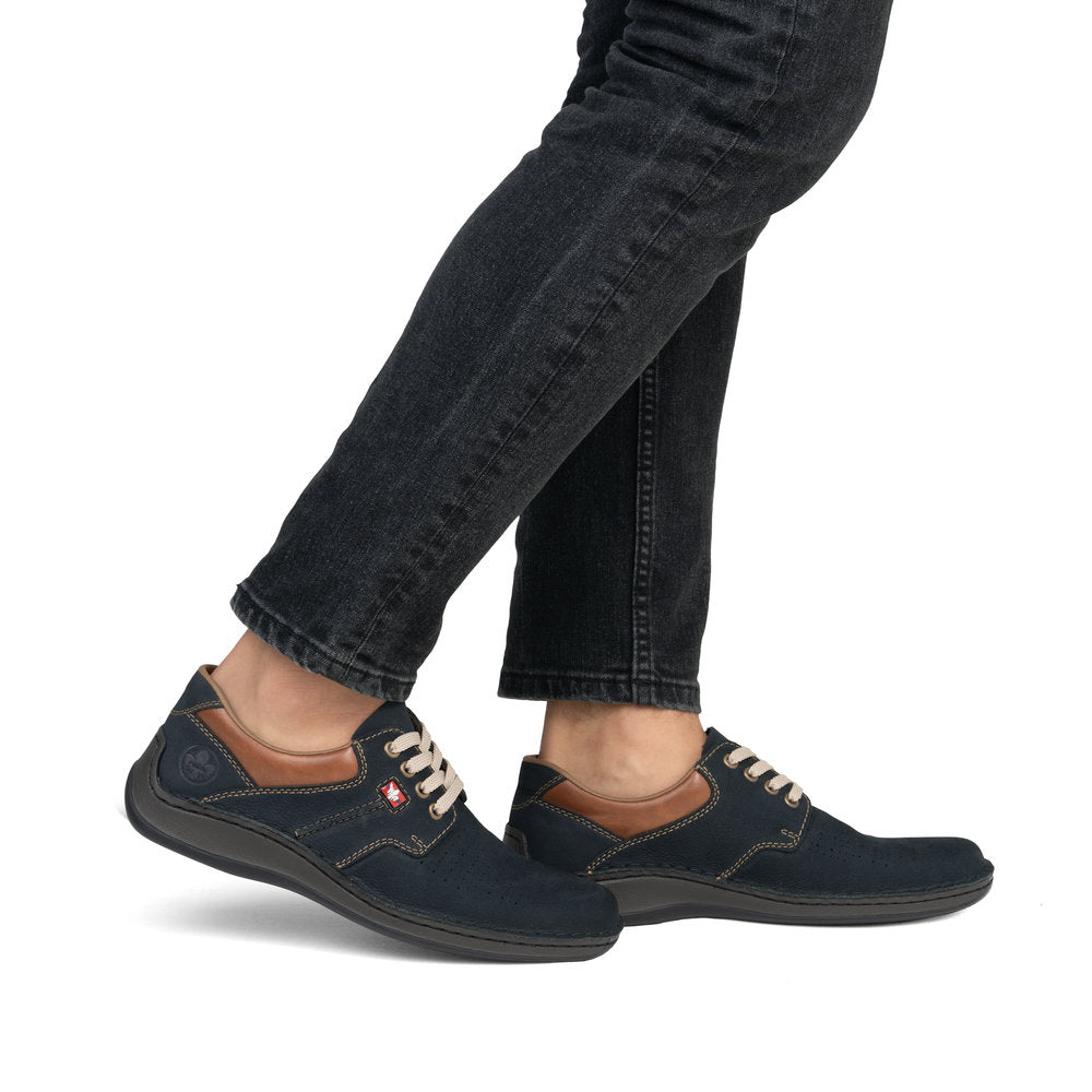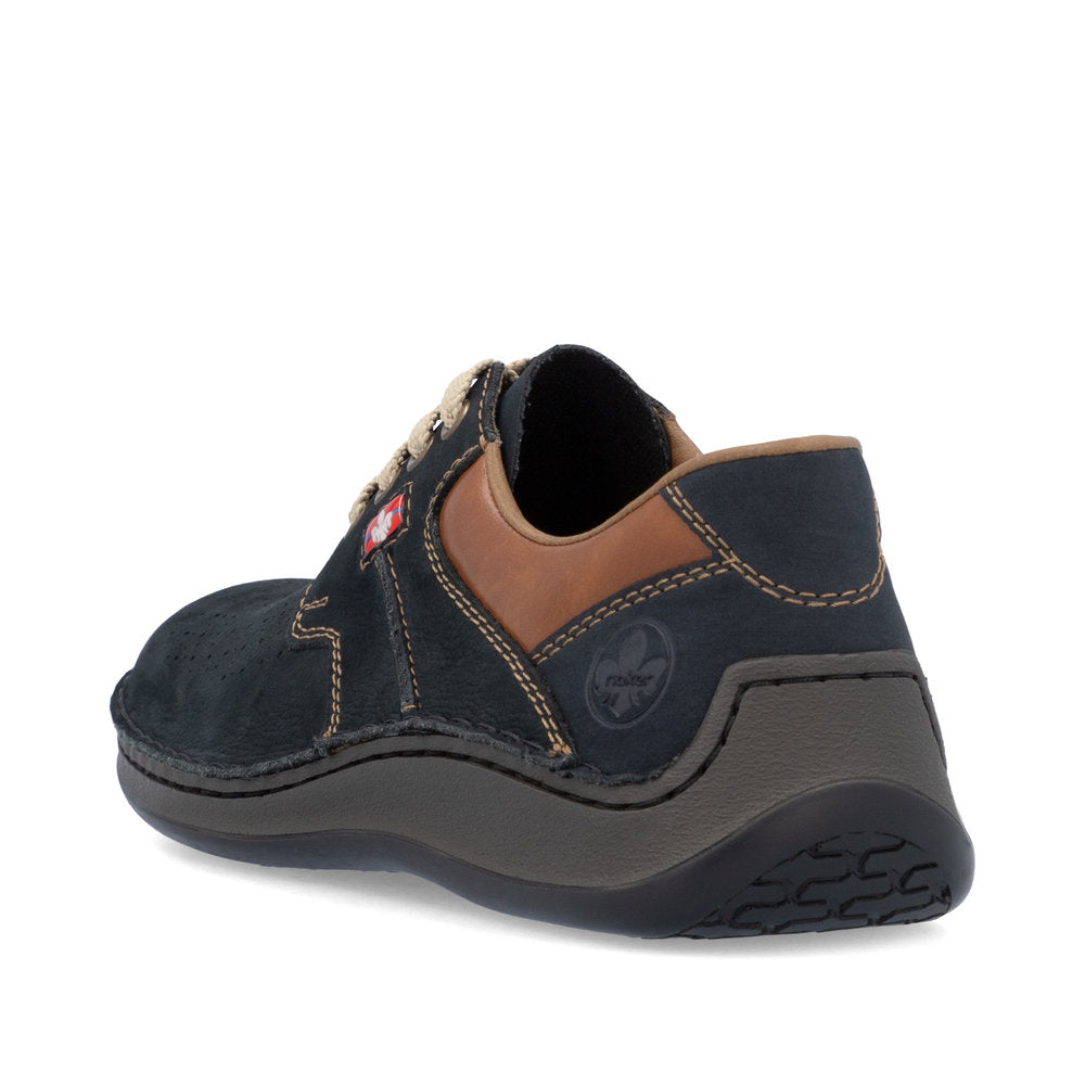 These casual blue Rieker lace-up shoes made of smooth leather are simple and practical. This shoe was made using the traditional stitchdown technique, which gives it a high degree of robustness and flexibility. In addition, the lacing ensures a good fit. The modern stay seam provides the perfect finish and a striking look. The light and shock-absorbing sole ensures a pleasant wearing sensation. Another plus is the extra soft cover sole. The extra width H gives the toes more freedom of movement.