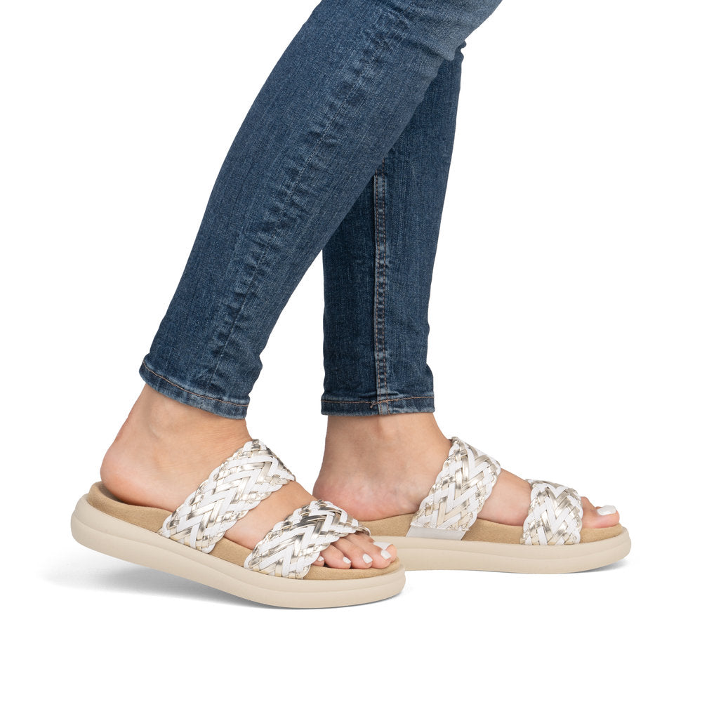 D2N52-80 - Vegan Style and Comfort! Thanks to these white remonte mules, your feet can also enjoy the sun. The elastic bands allow for an easy entry. Thanks to the proven remonte Lite 'n Soft technology, a super light sole and a soft footbed come together. The mules are also available up to shoe size 45! A great, comfortable companion for beautiful days!