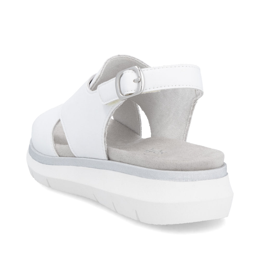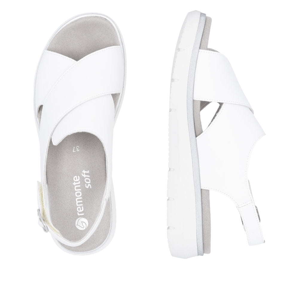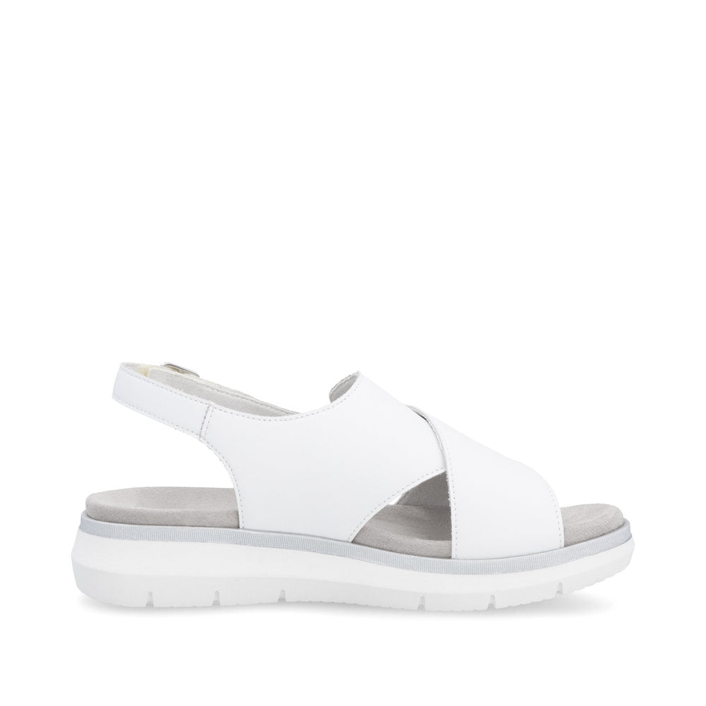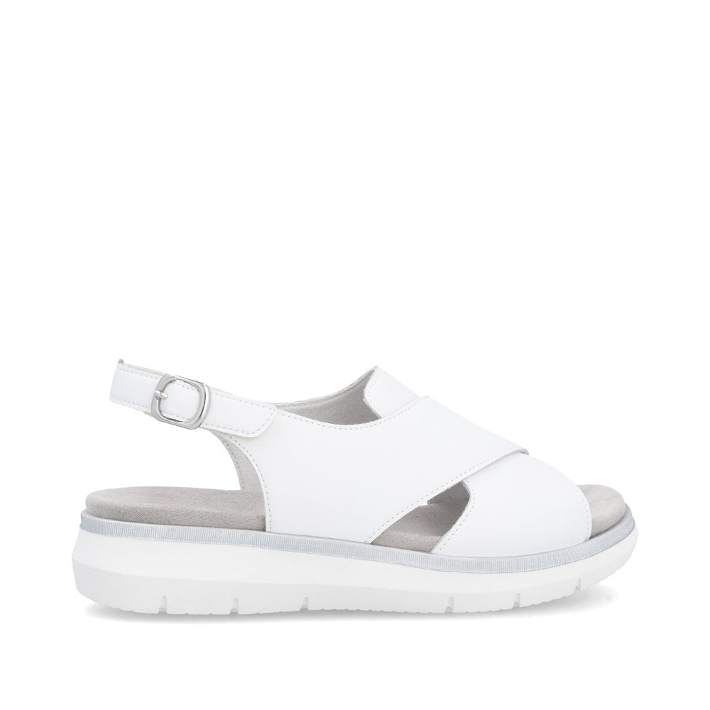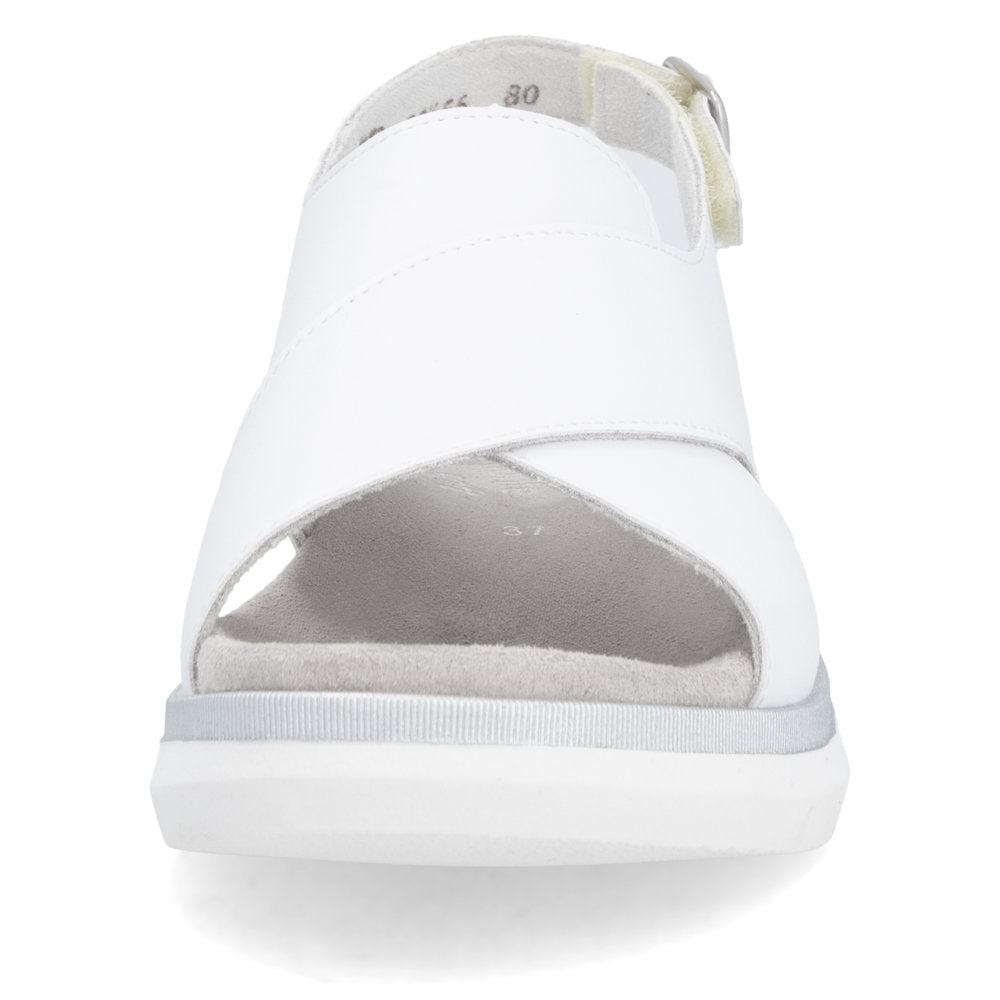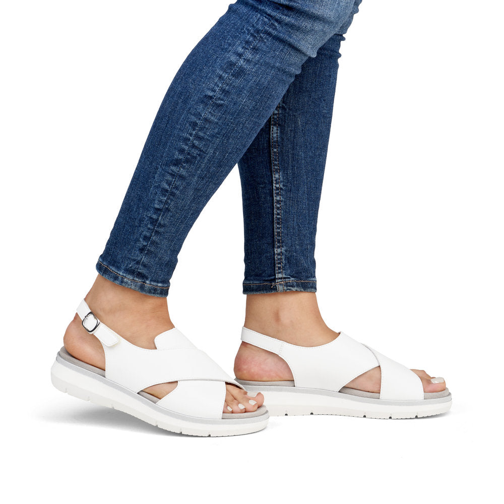 D2K56-80 - Sandal Love! These white remonte strap sandals made of smooth leather are absolute allround talents! Thanks to a hook and loop fastener, the sandals can be comfortably closed and adjusted for a perfect fit. The Lite 'n Soft technology combines a super light sole with a soft and removable insole. For all ladies with large feet, the sandals are also available in oversizes. You can't get more style than this!