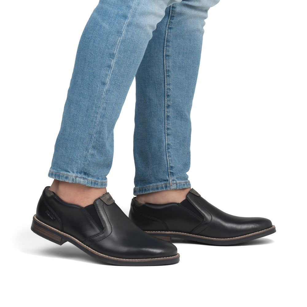 These black Rieker slippers made of smooth leather are the perfect companion for any occasion. The elastic bands allow for an easy entry. The grippy sole convinces all along the line and the extra soft cover sole is another plus. Thanks to the comfort width G 1/2, there is enough space in the forefoot area. More is not possible!