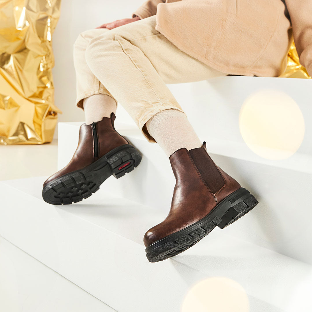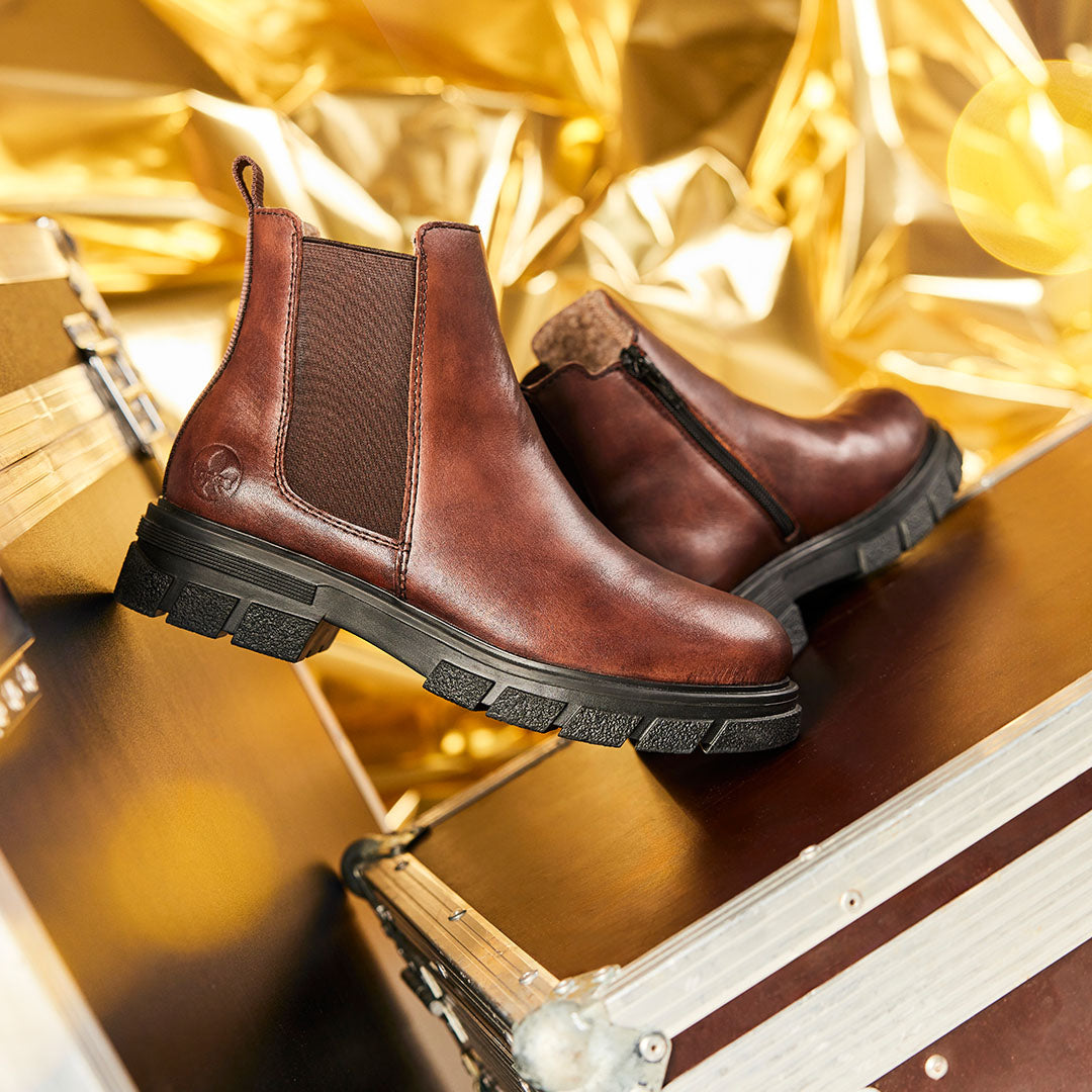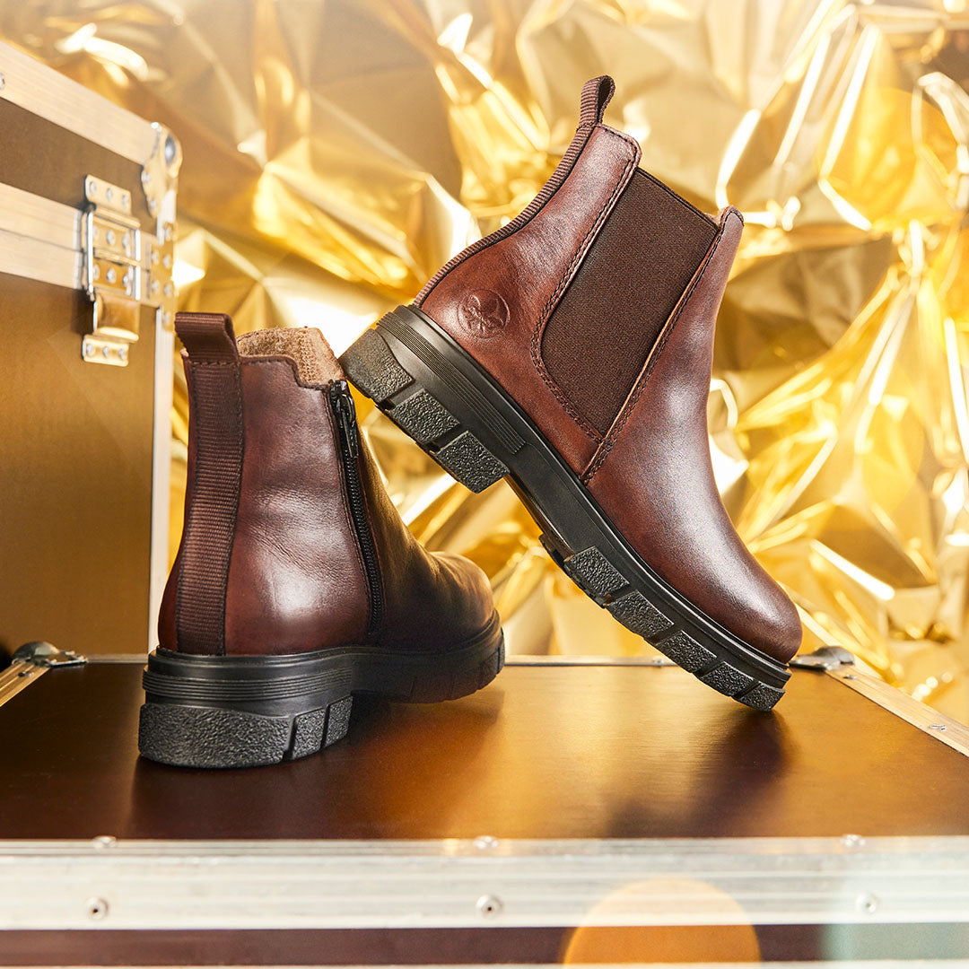 These dark brown Rieker chelsea boots made of smooth leather are the perfect companion for any occasion. In addition to the zipper, the model has a flexible shaft edge, which makes it twice as easy to put it on. The shoe has a grippy sole that impresses with good traction for a secure step. Another plus is the extra soft cover sole. These shoes are the perfect symbiosis of style and comfort!
