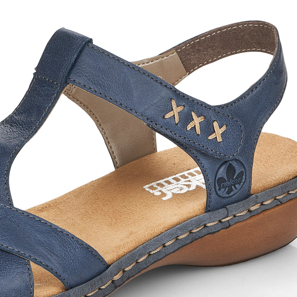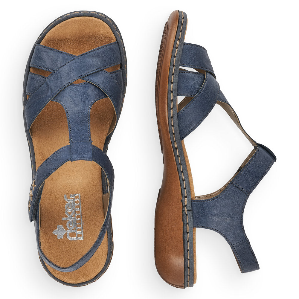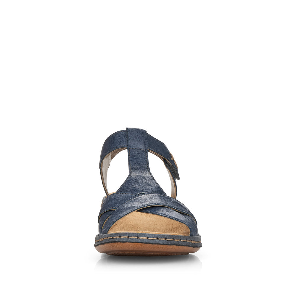 These slate blue strap sandals made of smooth leather are a comfortable companion. Crossed straps and a hook and loop fastener, together with the narrow heel strap, ensure optimal support. With the shock-absorbing and light sole, your feet will be pampered at every step. The narrow fit E 1/2 gives the foot good support in the shoe. Fashionable wellness feeling in Rieker style!