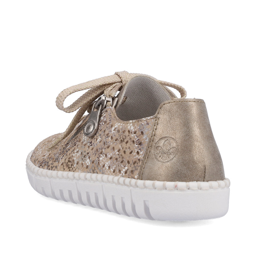 M2306-91 You won't want to take off these metallic Rieker lace-up shoes made of smooth leather. This shoe was made using the traditional stitchdown technique, which gives it a high degree of robustness and flexibility. The clever combination of lacing and zipper makes it easy to put on and take off the shoe. The grippy sole provides traction on different paths. In addition, the cover sole is extra soft. Our Light and Free technology combines flexibility and lightness for a natural walking sensation - like barefoot, only better.