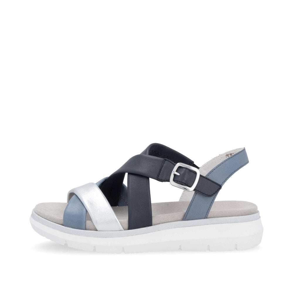 • D2K53-14 - Comfy queen! Every step feels like summer with these blue-metallic remonte strap sandals made of smooth leather. Straps give the foot the best support and guarantee optimal fit with a hook and loop fastener. Lite 'n Soft: a soft and removable insole meets an ultra-light outsole. For all ladies with large feet, the sandals are also available in oversizes. Grab it, girls!