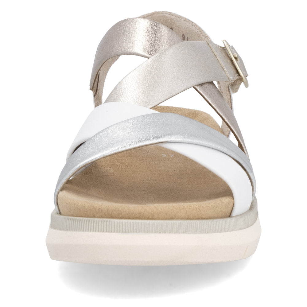 These remonte strap sandals made of smooth leather in metallic are your light and airy buddies for beautiful days. Straps give the foot the best support and guarantee optimal fit with a hook and loop fastener. Thanks to the proven remonte Lite 'n Soft technology and the soft and removable insole, the sandals are feather-light and comfortable to wear.